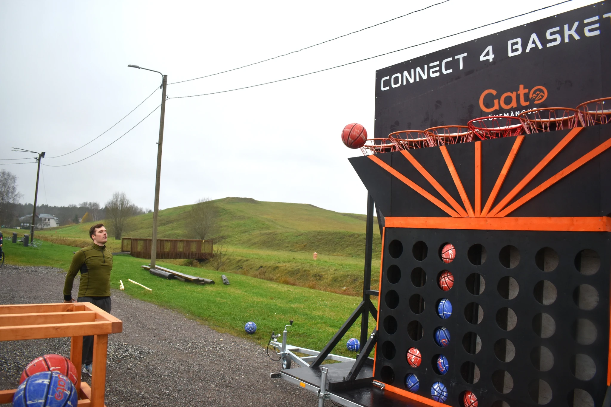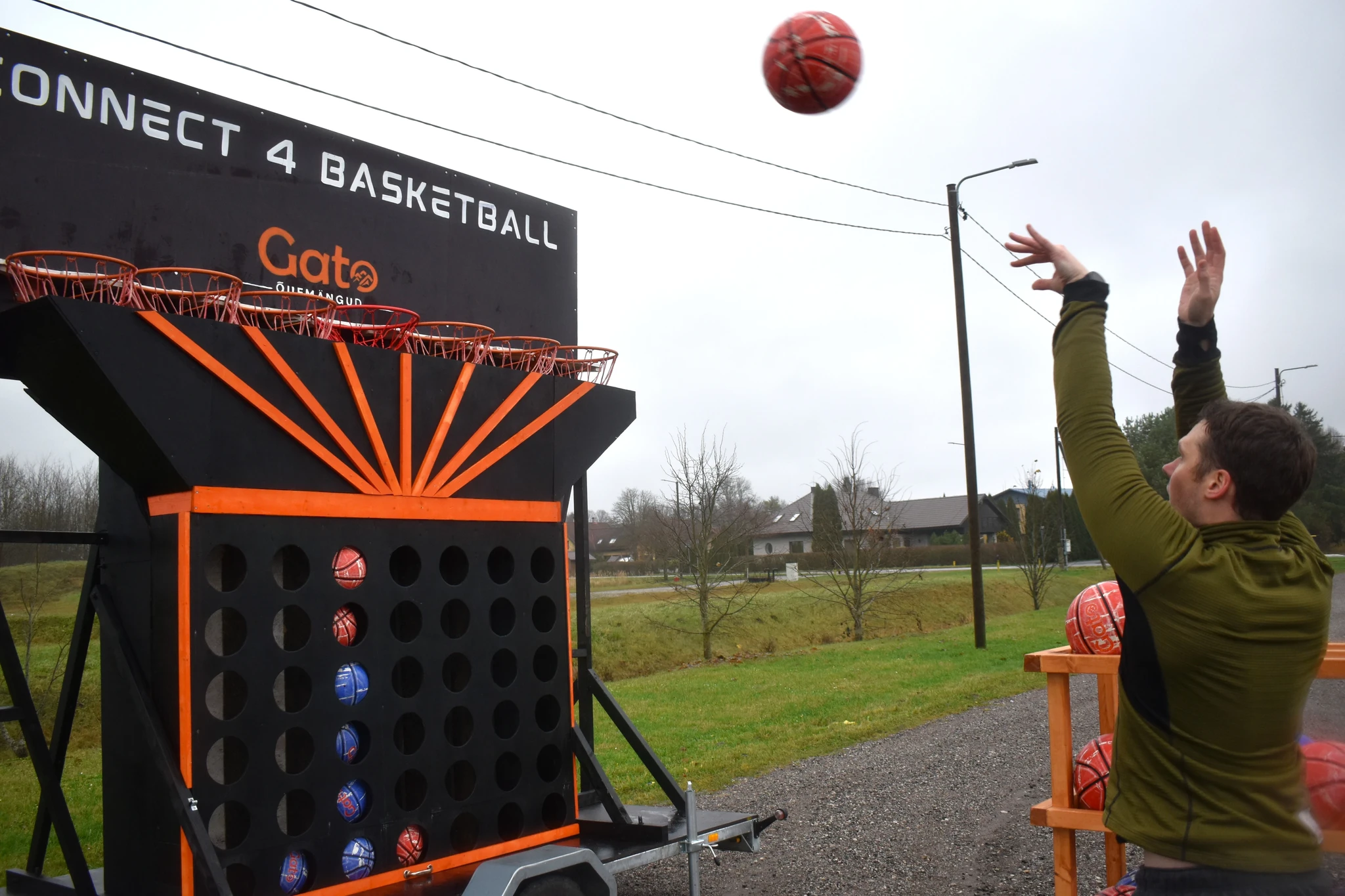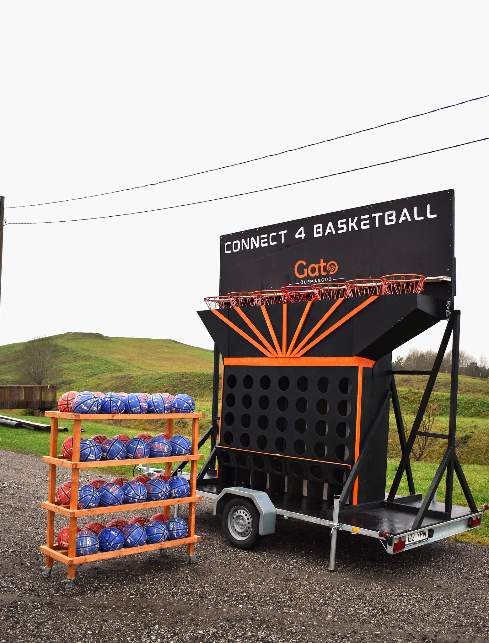 There are only a few full size Connect 4 Basketballs built in the whole world, even less on a trailer. This is Gato's version 2.0. There is a photo of the previous version in the gallery below.